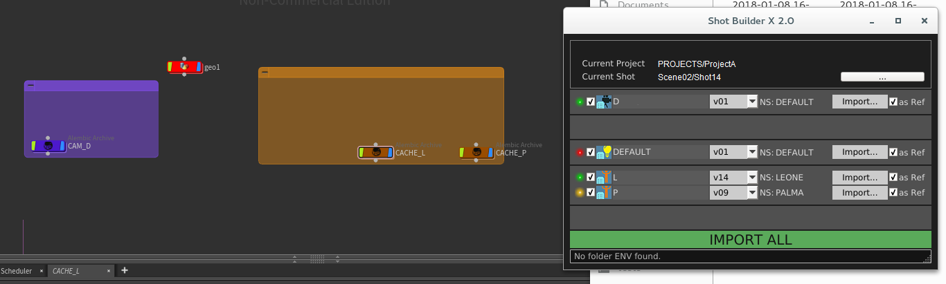 Manager of the elements in a specific project folder structure. Allows to visualize them, verify the update, load and overwrite them by choosing the version. In Houdini the import creates automatically the Alembic Archive node builded.